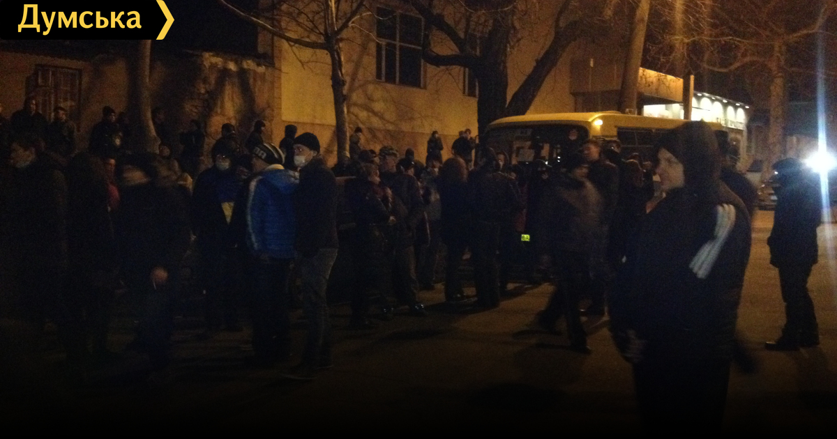 там народ как раз стоит и охраняет одесскую милицию что-бы их в Киев под пули не повезли.