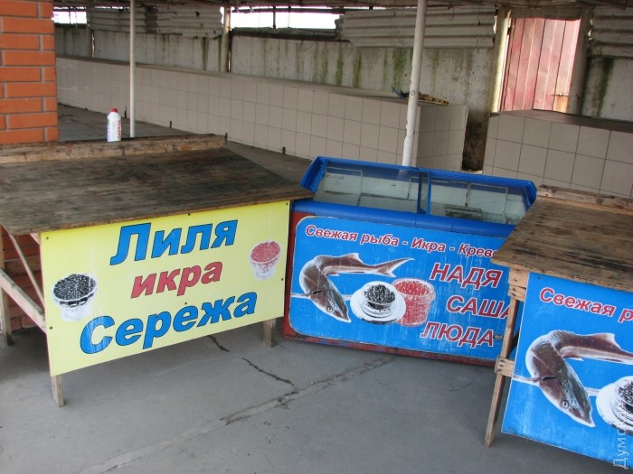 Его слова подтверждаются унылым видом пустынного рынка в селе. О том, что здесь когда-то била ключом торговля, свидетельствуют брошенные прилавки с надписями типа «Икра – Коля», «Икра черная-красная, Вася», «Деликатесы морские, икра на вес. Валя». Между рядами уныло тусят несколько торговок и пузатый мужичок «куркульского» вида.