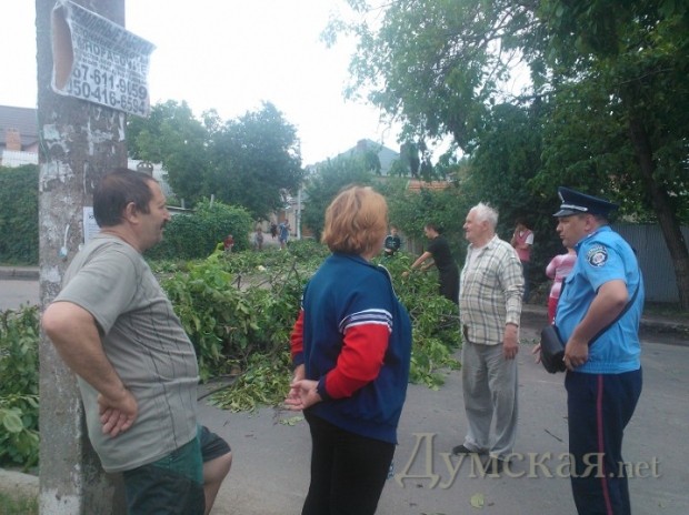 Жители улицы Дмитрия Донского вышли на борьбу за свет. Их дома остаются без электроснабжения вот уже шесть суток, с самого урагана. Чтобы энергетический монополист «Одессаоблэнерго» наконец обратило внимание на их проблемы, люди вышли на родную улицу и блокировали ее, построив настоящую баррикаду из рухнувших во время разгула стихии веток.