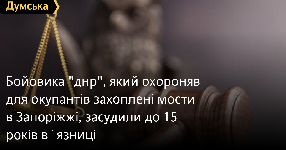 До 15 років позбавлення волі суд засудив бойовика терористичної організації «днр», який воював на боці російських окупантів проти України на південному фронті.