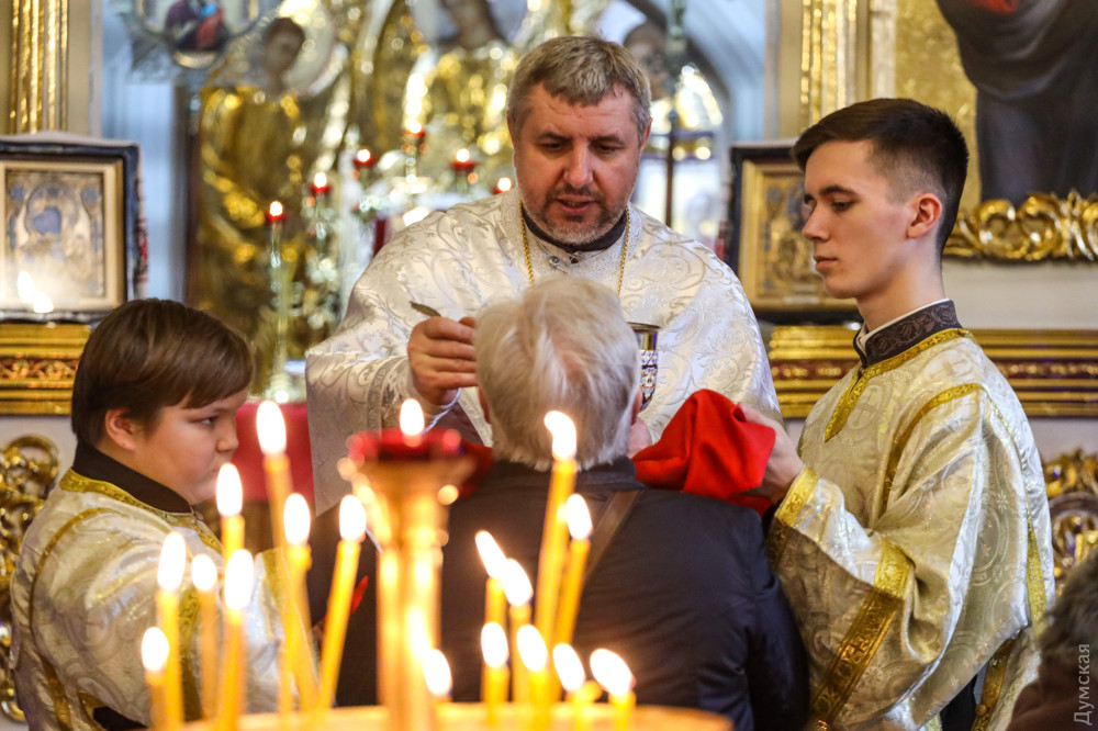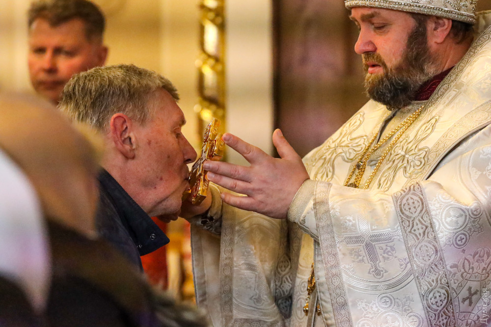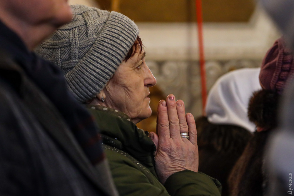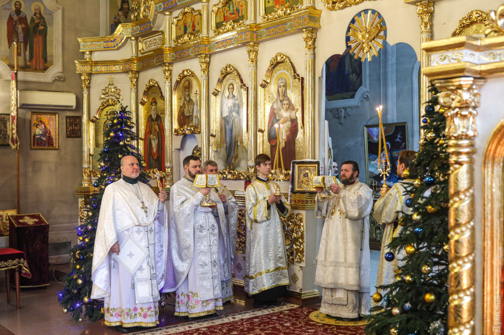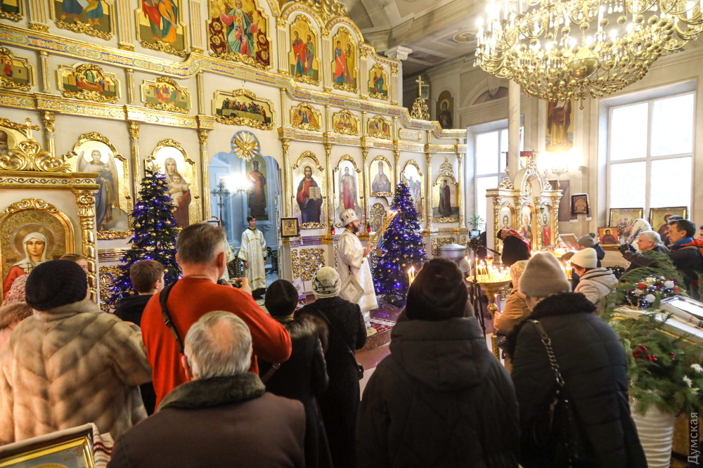 Собор Різдва Христового (Православної церкви України), що на вулиці Пастера, — один із небагатьох, де сьогодні в Одесі службу проводять українською мовою, повідомляє кореспондент «Думської».