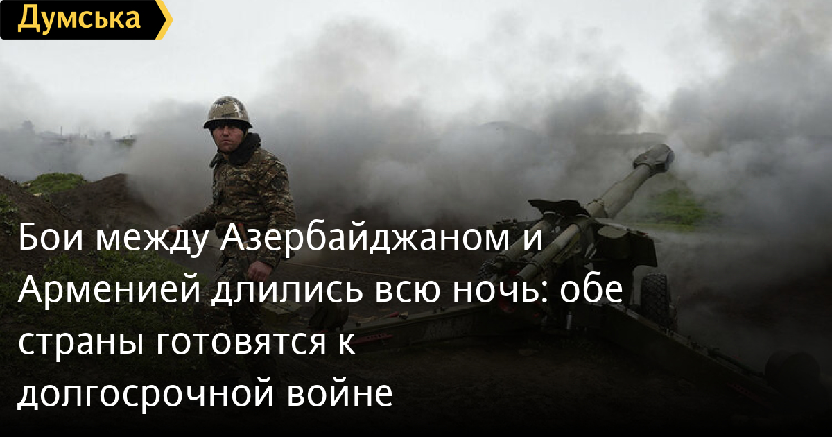 Бои между Азербайджаном и Арменией длились всю ночь: обе страны готовятся к долгосрочной войнеВ районе Нагорного Карабаха всю ночь шли бои между армянскими и азербайджанскими военнослужащими. В ходе ночных столкновений авиационные средства ВВС и войска уничтожили смешанную колонну бронетехники и другие армянские боевые машины, которые ехали из Мадагиза в направлении Агдере. Около 8 утра, азербайджанские солдаты уничтожили еще четыре танка армянских войск на Физули-Джебраильском направлении фронта. Артиллерийским огнем был уничтожен один танк, одна машина и около 10 военнослужащих другой армии. В Ереване сообщили об отражении нескольких атак ВС Азербайджана в Нагорном Карабахе. В Минобороны Армении отметили, что на отдельных участках противнику были нанесены «значительные потери в живой силе и технике». МИД Армении обвинил Азербайджан к подготовке к расширению географии боевых действий и агрессии против Армении. Также Азербайджан обвиняют в дезинформации относительно артобстрела с территории Варденисского района Армении Дашкесанского района Азербайджана. «Цель данной дезинформации — подготовить почву для расширения географии боевых действий, в том числе, осуществления агрессии против Республики Армения», — сказано в сообщении МИД. Ранее Армения заявила, что готовится к долгосрочной войне из-за Нагорного Карабаха, и добавила, что на ситуацию оказывает серьезное влияние Турция. «Мы готовимся к долгосрочной войне. Почему? Потому что, я еще раз говорю, что здесь главный игрок не Азербайджан, а Турция. И она преследует свои геополитические цели», — отметил главный советник премьер-министра Армении Вагаршак Арутюнян. Он добавил, что продолжительность боевых действий будет зависеть от многих факторов, в том числе — от реакции мирового сообщества. «Эрдоган (президент Турции, — Ред.) это будет использовать для своих игр, как в Средиземном море, также он будет это использовать для того, чтобы укрепиться на международной арене. В частности, здесь в регионе развязав войну, он получает действия для маневра», — сообщил Вагаршак Арутюнян. В связи с происходящим Армения объявила о мобилизации мужчин до 55 лет, а также ограничила их выезд из страны. Теперь покинуть Армению мужчины призывного возраста смогут только с письменного позволения территориальных военных комиссариатов. В свою очередь Азербайджан называет происходящие бои «Великой отечественной войной». По словам помощника президента, заведующего отделом по вопросам внешней политики Администрации президента Хикмета Гаджиева, Армения должна прекратить оккупацию. «Это Великая отечественная война. На территории Азербайджана объявлено военное положение, сегодня объявлена частичная мобилизация. Азербайджан действует в рамках международного права, чего нельзя сказать об армянских вооруженных силах», — заявил Хикмет Гаджиев. СМЕРТЬ РОССИЙСКИМ ОККУПАНТАМ! Заметили ошибку? Выделяйте слова с ошибкой и нажимайте control-enter |