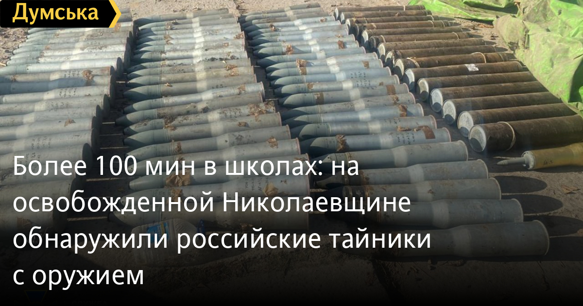 Понад 100 мін у школах: на звільненій Миколаївщині виявили російські схованки зі зброєюСотні одиниць протитанкового озброєння, артилерійські снаряди та бойові гранати виявили українські спецслужби у звільнених районах Миколаївщини. Схованки з вибухівкою окупанти облаштували на території соціальних об’єктів, у тому числі лікарень та шкіл, повідомили у СБУ. Лише в одній Снігурівці Баштанського району за два дні співробітники СБУ виявили понад 200 танкових снарядів, більш як 100 мін, вісім артснарядів і боєприпасів для автоматичної гармати, 15 пострілів до протитанкових ракетних комплексів, 13 бойових гранат Ф-1, чотири одиниці автоматичної зброї, зокрема кулемети, понад 15 тисяч набоїв різного калібру. Бойові схрони ворог облаштував для створення резерву окупаційних угруповань рф та проведення диверсій на південному напрямку. Всі вилучені засоби ураження передано для потреб ЗСУ. СМЕРТЬ РОСІЙСЬКИМ ОКУПАНТАМ! Помітили помилку? Виділяйте слова з помилкою та натискайте control-enter |