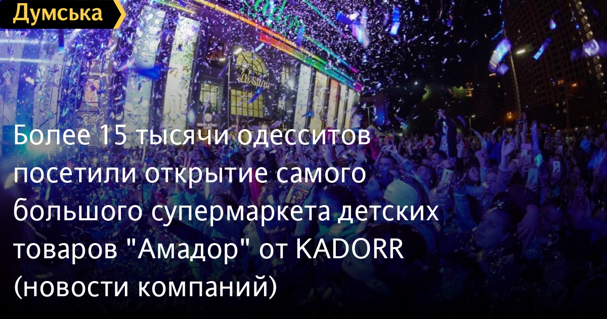 Более 15 тысячи одесситов посетили открытие самого большого супермаркета детских товаров «Амадор» от KADORR (новости компаний)Более 15 тысяч одесситов посетили грандиозное открытие самого большого супермаркета детских товаров и детского центра «Амадор» от компании KADORRGroup. Это свыше 2 500 кв м, на которых создатели собрали все самое популярное и лучшее со всего мира, и предоставили совершенно уникальное пространство, где есть все для мам и детей. Всех гостей встречали сказочные персонажи из мира Дисней, с самого утра на сцене играл диджей, а в самом игровом пространстве проходили всевозможные мастер-классы и презентации.