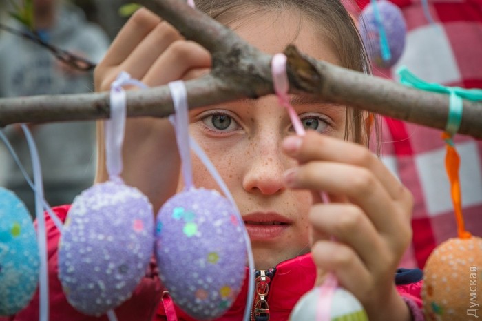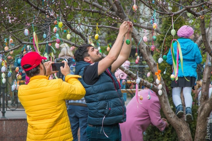 В одесском Горсаду появилось Пасхальное дерево. На ветках рядом с распускающимися цветами красуется более 500 писанок, сделанных в рамках благотворительной акции.