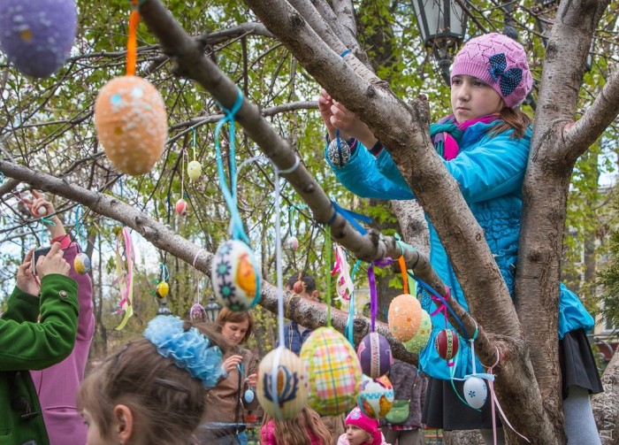 По словам организаторов, традиция наряжать пасхальное дерево появилась в Германии еще в средние века. Всемирную известность получило дерево у дома жителя города Заальфельде Фолькера Крафта, на котором сейчас красуется больше десяти тысяч разноцветных яиц. Немец начал украшать его в 1965 году.