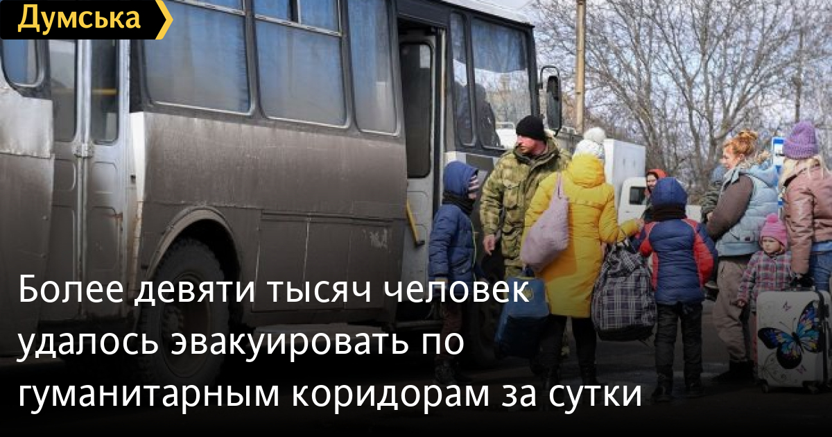 Из девяти гуманитарных коридоров, согласованных на 18 марта, сработали семь. По ним удалось эвакуировать 9145 человек.