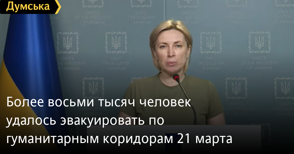 21 марта из восьми согласованных коридоров сработало семь. По ним удалось эвакуировать 8057 человек.