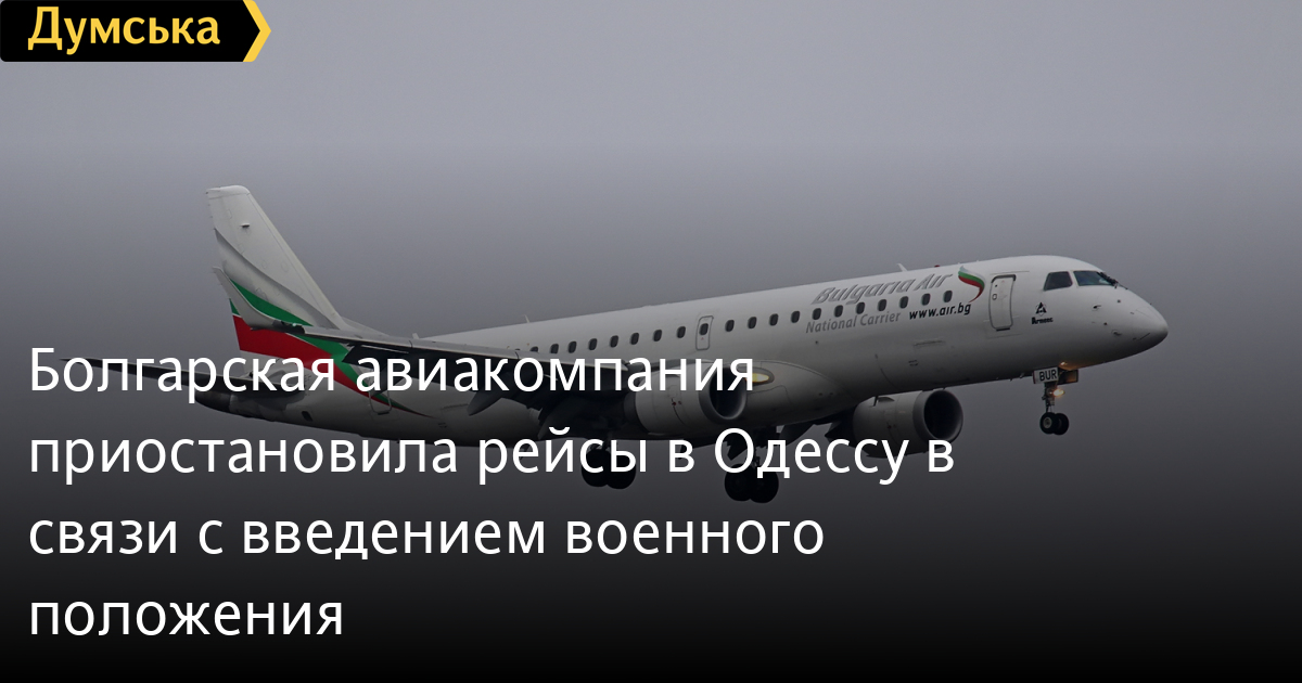 Болгарская авиакомпания Bulgaria Air временно приостановила авиасообщение «София — Одесса — София». Такое решение она объяснила рекомендациями своего Министерства иностранных дел о необходимости обеспечения безопасности пассажиров, связанной с введением военного положения в Украине.