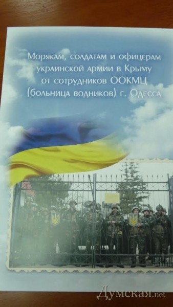 В Одесском областном медицинском центре, более известном одесситам как больница водников, завершился первый этап по сбору средств для военнослужащих украинской армии, которые находятся в крымских частях, блокируемых российскими солдатами и силам «местной самообороны».