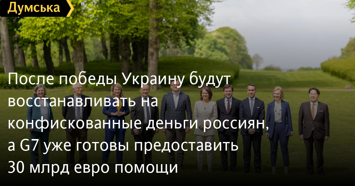 Министр иностранных дел Украины Дмитрий Кулеба по итогам встречи с главами МИД стран G7 заявил, что восстановление Украины после вторжения российской федерации будет осуществляться в том числе за счет зарубежных российских активов, которые страны договорились конфисковать.