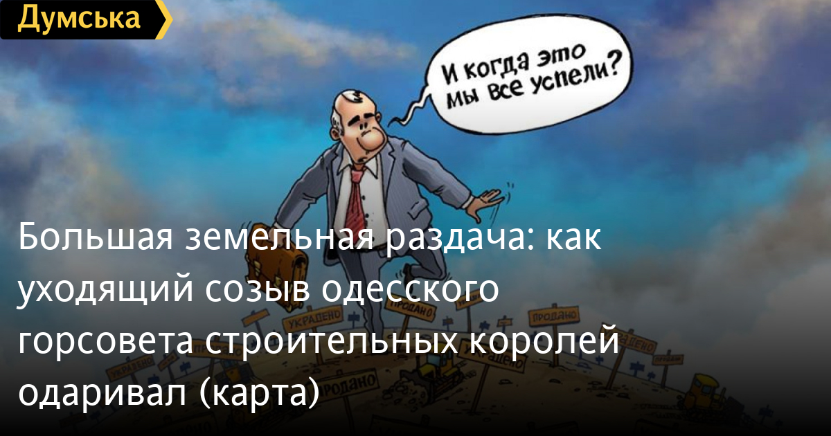 Сотни гектаров коммунальной земли передал за пять лет в частные руки пока еще действующий созыв одесского городского совета. Будем честными: чтобы проанализировать весь масштаб того, что прошло через земельную комиссию и сессии муниципального собрания, нужен не один месяц. Многие проекты были спрятаны за пунктами «внесение изменений в ранее принятые решения», часть земли строительные компании заполучили, объединив крошечные участки, которые якобы приватизировали простыми одесситами (т.н. «дачная схема»).