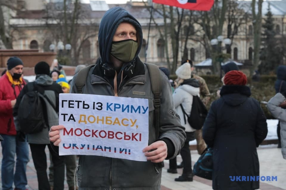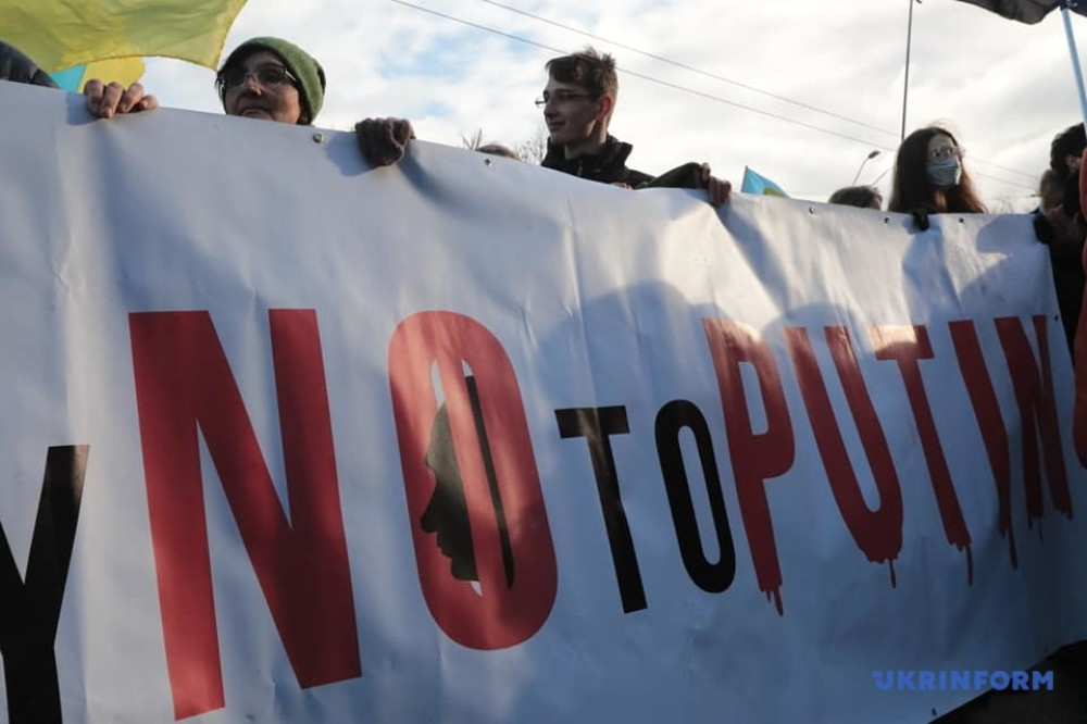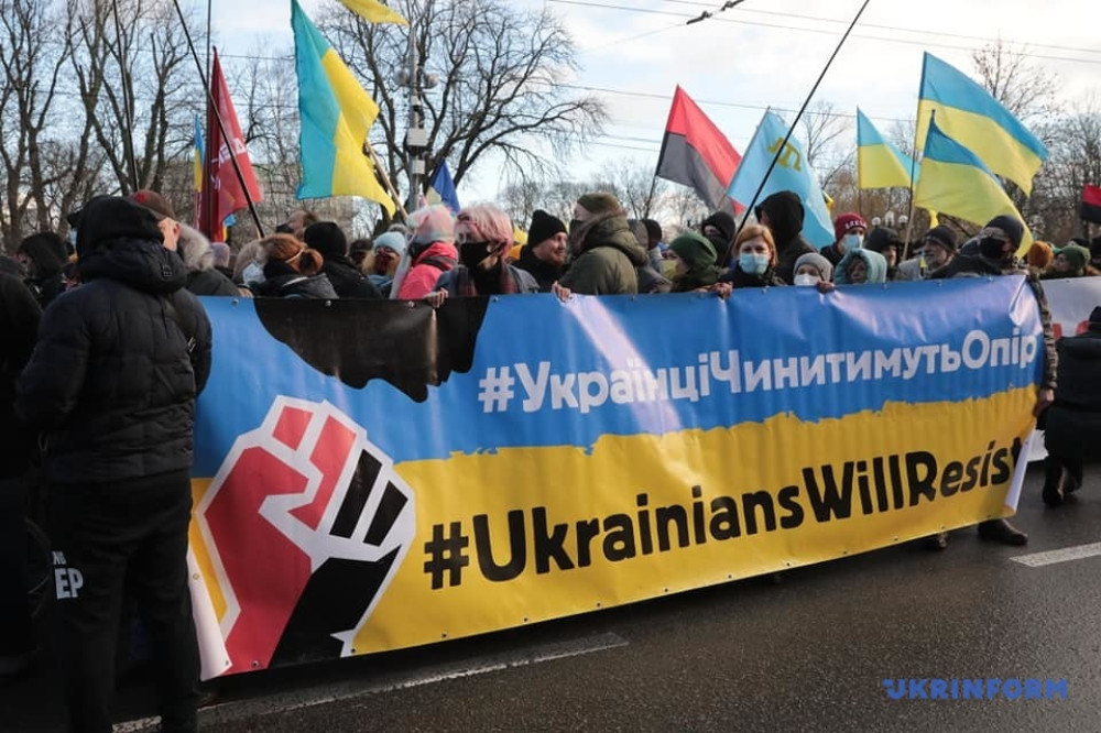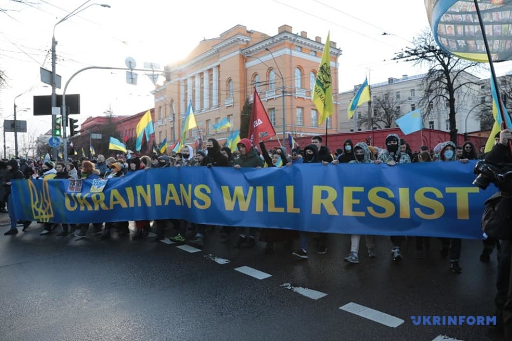 «Мы хотим показать, что украинцы не боятся угроз Путина, не принимают его ультиматумов и будут сопротивляться независимо от ситуации, которая может сложиться с политическим руководством страны», — рассказал один из организаторов акции, координатор Движения сопротивлению капитуляции Андрей Леус.
