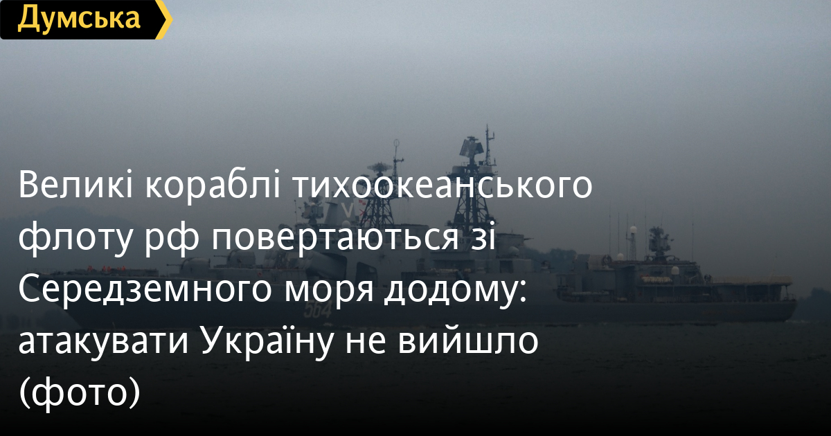 Кораблі тихоокеанського флоту російської федерації, які з початку лютого перебували в Середземному морі, повертаються до Владивостока.