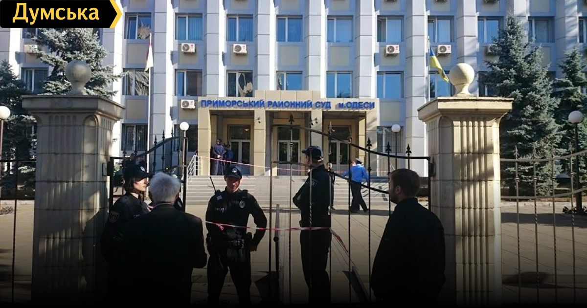 Специалисты взрывотехнической службы обследовали помещения и территорию Приморского районного суда Одессы, анонимное сообщение о минировании которого поступило как раз перед заседанием по делу четверых «подрывников». «Эвакуированы около 70 человек. В результате проверки никаких взрывных устройств или взрывоопасных веществ не обнаружено. Сейчас суд заработал в обычном режиме», — отметили в пресс-службе облУВД. В милиции напомнили, что такое «минирование», согласно ч.1 ст.259 УК (заведомо ложное сообщение об угрозе безопасности граждан, уничтожения или повреждения объектов собственности), наказывается лишением свободы на срок от двух до шести лет. СМЕРТЬ РОСІЙСЬКИМ ОКУПАНТАМ! Помітили помилку? Виділяйте слова з помилкою та натискайте control-enter Новини по цій темі: 29 липня 2025: В Усатово Одеської області сталася перестрілка: поліція працює на місці (відео, оновлено) 28 липня 2025: П'яний на "Ягуарі" або гіпертонік? Звільнений топ-посадовець одеської поліції хоче повернутися на службу 19 червня 2025: Дівчинку, яку шукали сотні одеситів, знайшли вбитою: поліція працює з чоловіком, ймовірно причетним до загибелі 27 травня 2025: Увели гектар в університету: на Одещині засудили земельних аферистів, але без посадки і Хвоста |