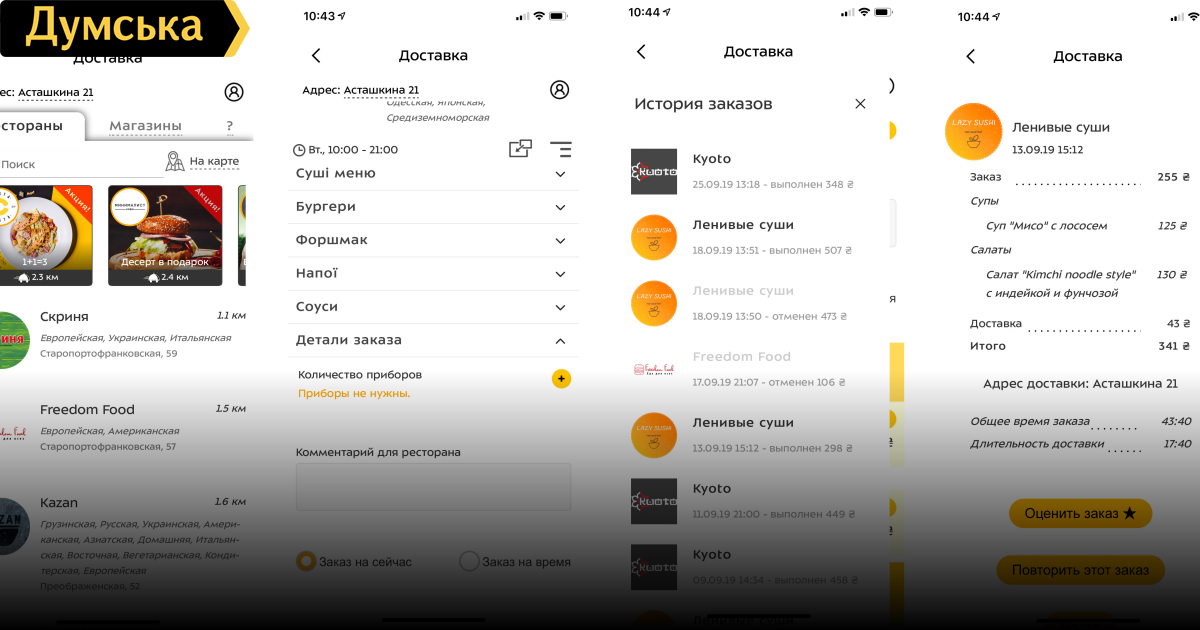 На заказах от 500 грн доставка в среднем становится бесплатной. А при заказе блюд на 100 грн (например, шаурмы) на расстояние 1 км доставка в квартиру будет стоить 50 грн.