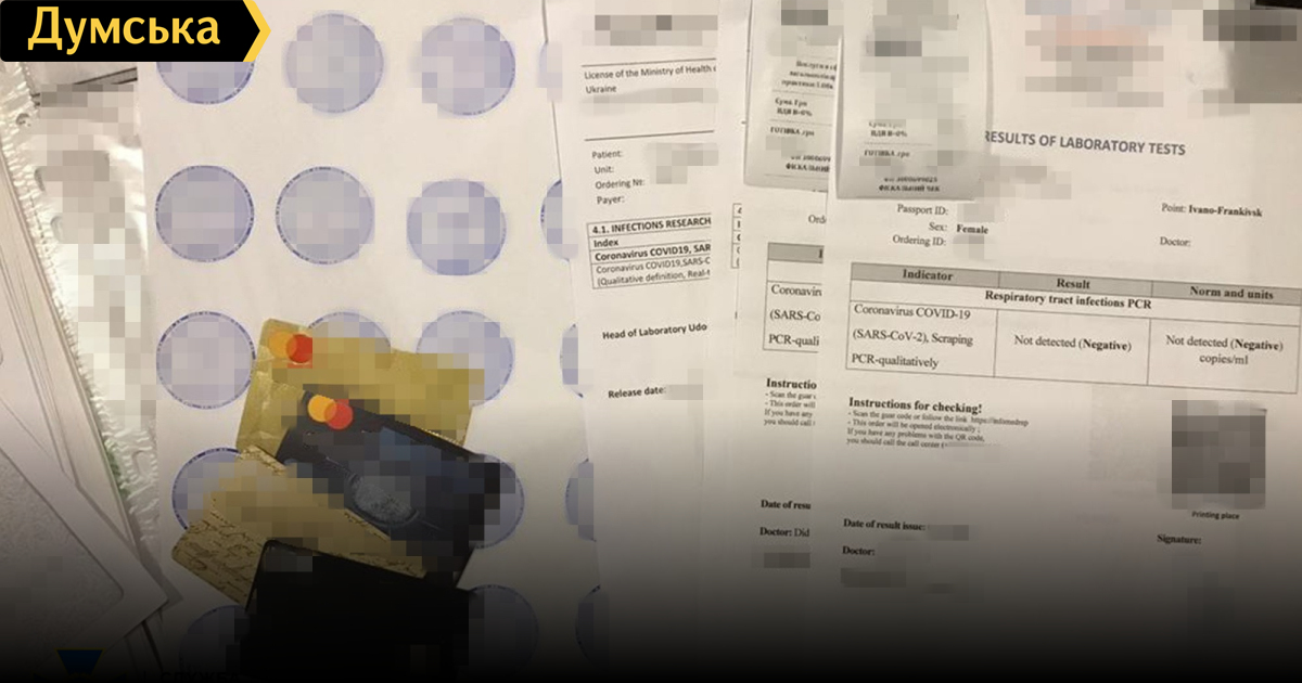 Бонусы к путевке и COVID-типография: в трех областных центрах Украины разоблачили масштабные фальсификации тестов и сертификатовПреступные схемы подделки COVID-сертификатов и ПЦР-тестов разоблачили правоохранители в Киеве, Харькове и Ивано-Франковске за прошедшие сутки. Как сообщает пресс-центр СБУ, в общей сложности злоумышленники изготовляли по несколько сотен подделок ежедневно, «зарабатывая» миллионы гривен. В столице три жителя Киевской области почти год печатали фейковые сертификаты о вакцинации и результаты ПЦР-тестирования. Они запустили целую «типографию», которая ежедневно производила до 20 подделок, создали специальный телеграм-канал для поиска клиентов. Месячный оборот дельцов составлял примерно 3 млн гривен. Стоимость одного «теста» составляла 750 грн, а «сертификата о вакцинации» — 4500 гривен. «Для придания подделкам достоверного вида злоумышленники наносили на них QR-код, который после считывания переводил на фиктивный сайт медицинского учреждения», — сообщили в СБУ. В Харьковской области разоблачили турагентство, которое предлагало своим клиентам фейковые ПЦР-тесты в виде бонуса к путевке. Схема существовала с начала 2021 года. Справки продавали по 500 гривен. Инфицированный человек имел возможность свободно получить отрицательные результаты тестирования. На Прикарпатье СБУ разоблачила владельца сети турагентств, массово изготовлявшего поддельные ПЦР-тесты. Он обеспечивал своих клиентов полным пакетом документов, необходимых для выезда за границу, в том числе и фейковыми справками о негативном результате ПЦР-тестирования на COVID-19 (по цене 500 гривен). По данным следствия, злоумышленник подделывал справки на бланках двух общеукраинских медлабораторий, нанося на фальшивки поддельные печати медучреждений и врачей. По всем выявленным фактам совершения преступлений объявлены подозрения.