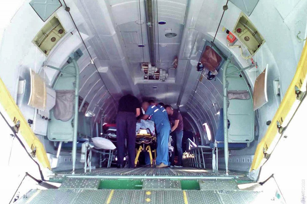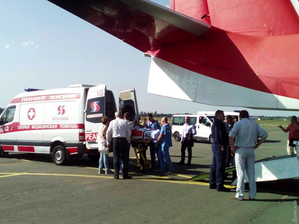 Врачи диагностировали у него закрытую черепно-мозговую травму, сотрясение мозга, ушибы органов грудной клетки, многочисленные переломы и травматический шок III степени. После стабилизации состояния его решили доставить в Одессу.