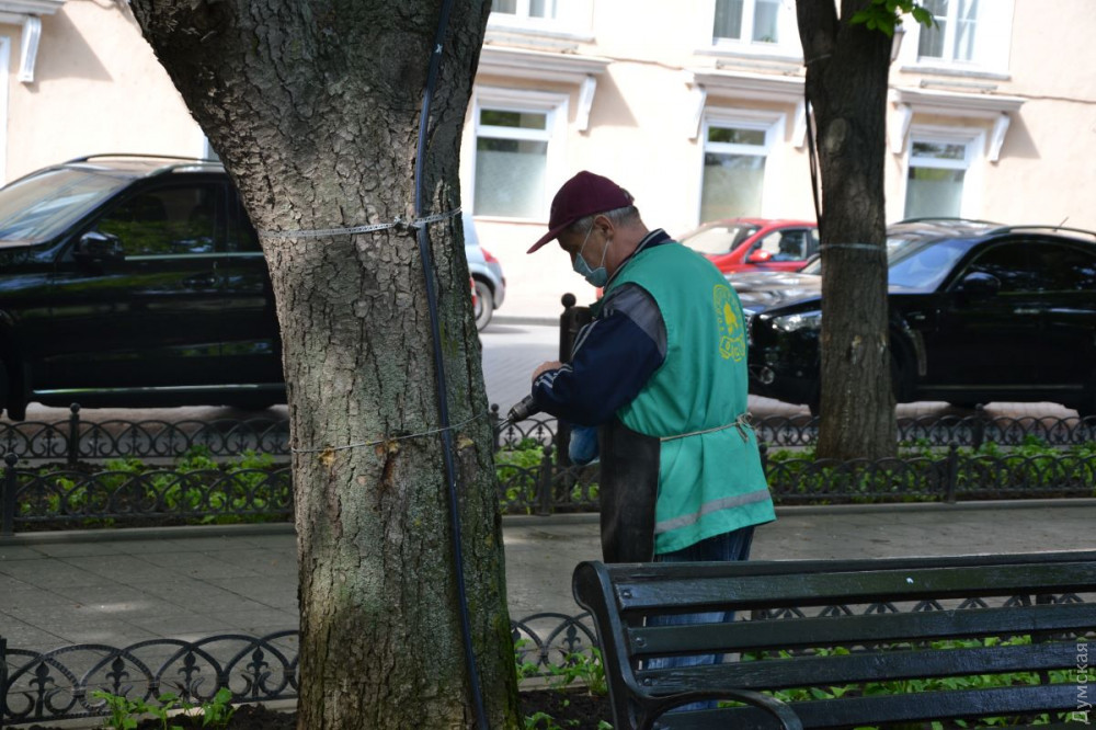 В апреле месяце проводилась побелка стволов деревьев в санатория им. Чкалова. И совсем не плодовых.