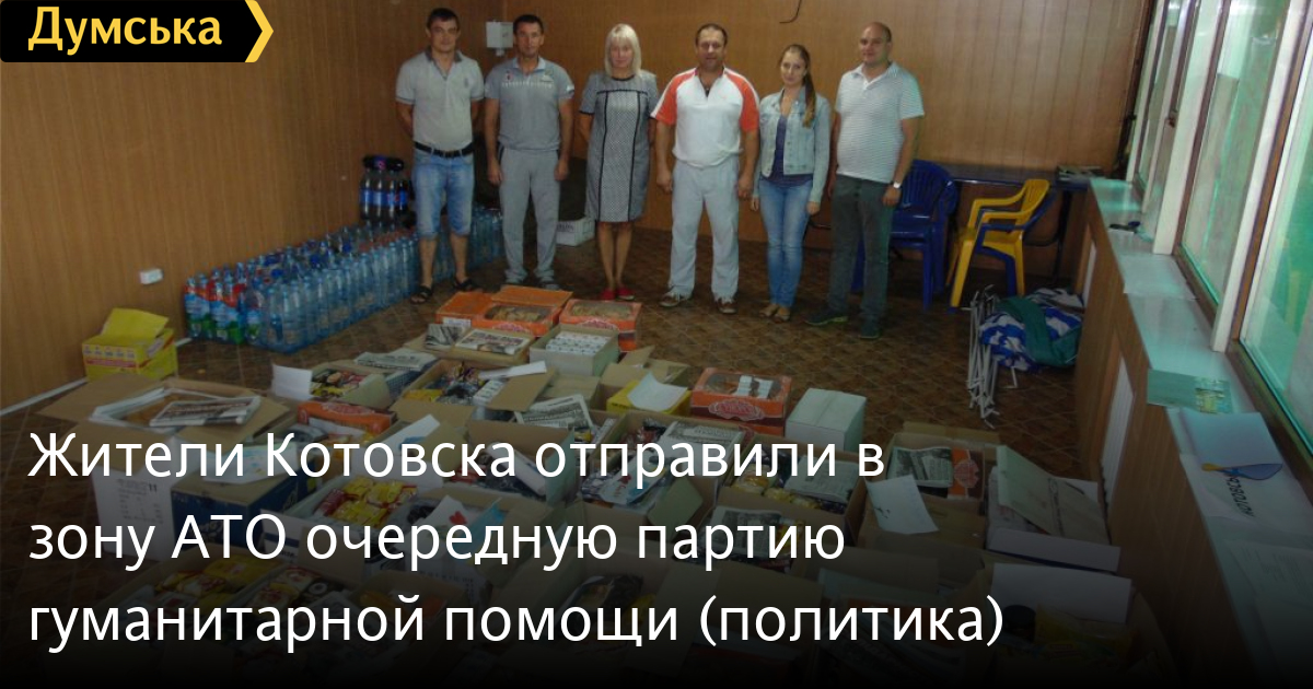 Жители Котовска отправили в зону АТО очередную партию гуманитарной помощи (политика)Котовская районная организация партии «Солидарность» Блок Петра Порошенко оправила в зону АТО 15 посылок с гуманитарной помощью. Еще десять формируются и будут отправлены в ближайшее время. В посылках — продукты питания, белье, медикаменты, сигареты, берцы, форма и тактические очки. «Мы благодарны всем котовчанам, которые приняли участие в сборе помощи для наших военных. Наша поддержка очень важна для них и для нашей победы. Слава Украине!» — отмечает руководитель Котовской ячейки БППС Татьяна Понепалюк. Помощь от котовчан отправили в поселок Марьинка Донецкой области, где несут службу бойцы одесской 28 механизированной бригады, среди которых есть и жители Котовска. СМЕРТЬ РОССИЙСКИМ ОККУПАНТАМ! Заметили ошибку? Выделяйте слова с ошибкой и нажимайте control-enter Новости по этой теме: 17 апреля 2019: Порошенко пообещал уволить всех губернаторов и назначить вместо них глав ОТГ: кто может претендовать на этот пост в Одессе? (видео) 19 февраля 2019: В Одесской области неизвестные устроили погром в приемной партии Порошенко (обновлено) 12 февраля 2019: За права жителей Крыма и освобождение пленных моряков: в Одессе собирают подписи под обращением к Генсеку ООН 17 октября 2018: Губернатор Степанов обзавелся еще одним заместителем из БПП |