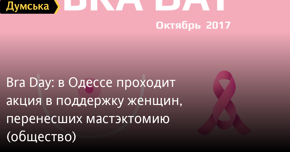 Bra Day: в Одессе проходит акция в поддержку женщин, перенесших мастэктомию (общество)В рамках всемирного месяца борьбы с раком молочной железы в Одессе впервые проведут Bra Day – социальную акцию, цель которой — поддержать женщин, победивших тяжелый диагноз, и помочь им вернуться к нормальной жизни. Акцию инициировали врачи и пациенты Медицинского дома Odrex. Информацию об этом мероприятии одесситы активно распространяют в социальной сети Facebook, публикуя фотографии с хештегом #odrexbraday. «Мы готовы оказывать помощь всем женщинам, для которых актуальна эта проблема. Конечно, операция по восстановлению груди подойдет не каждой пациентке. Но каждая женщина имеет право получить точную и достоверную информацию, чтобы принять для себя правильное решение. Ждем вас на Odrex Bra Day!» — добавляет Владимир Сажиенко. В рамках мероприятия также выступит пациентка Медицинского дома Odrex Галина Данелья, которая готова поделиться своей историей борьбы с раком молочной железы. Начало 14 октября в 12:00 в Medical Hub Odrex по адресу ул. Раскидайловская, 69/71. Вход свободный. Регистрация на сайте. СМЕРТЬ РОССИЙСКИМ ОККУПАНТАМ! Заметили ошибку? Выделяйте слова с ошибкой и нажимайте control-enter |