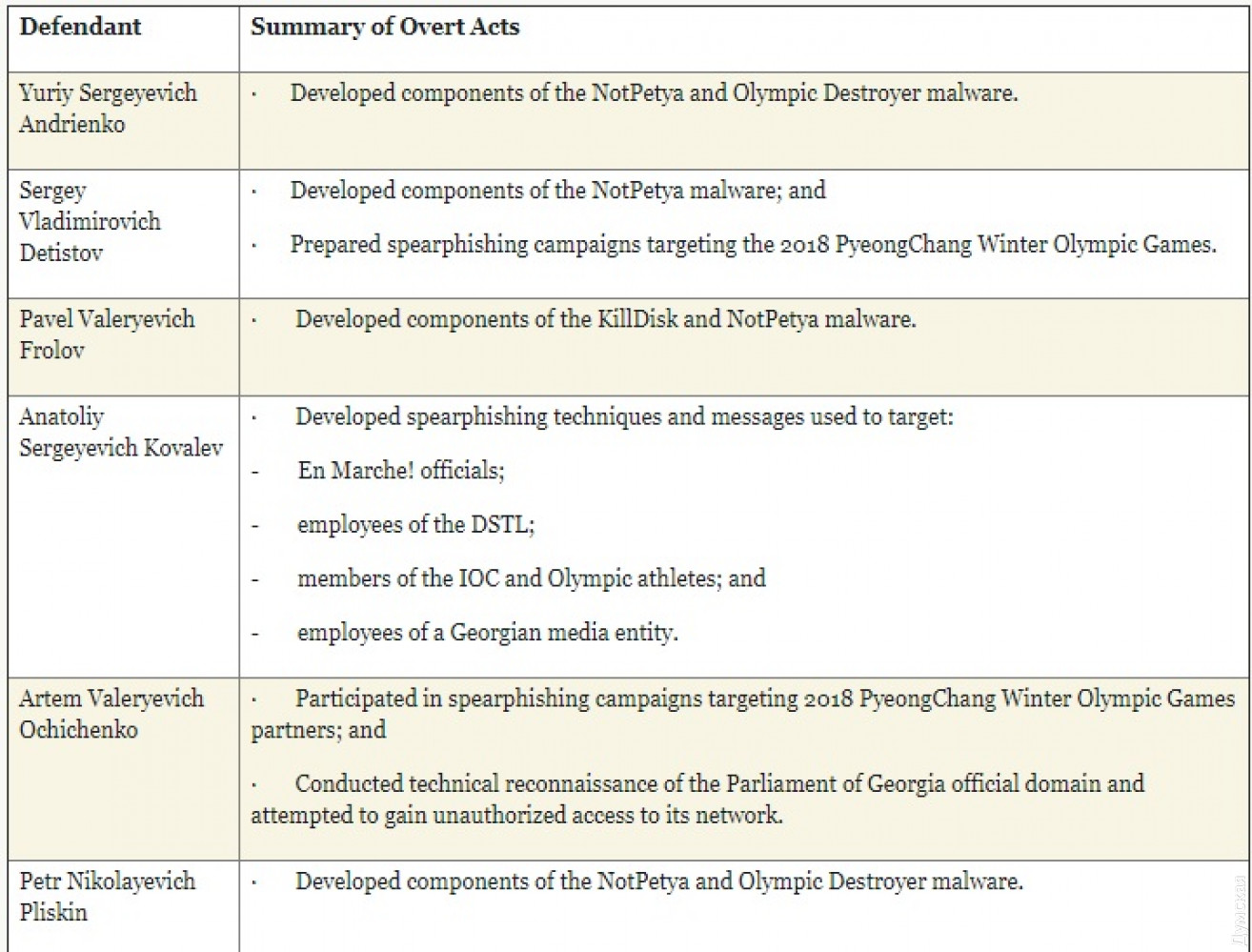 Британия и США обвиняют хакеров из России в атаках на Олимпиаду, правительство Украины и выборы во ФранцииВласти Великобритании и США одновременно выдвинули обвинения в отношении шести россиян, которых они считают сотрудниками ГРУ, в связи с хакерскими атаками на сайты нескольких Олимпиад, а также на предвыборный штаб нынешнего президента Франции. Как сообщает ВВС, министерство юстиции США выдвинуло обвинения против шестерых граждан России по делу о хакерских атаках, направленных на зимнюю Олимпиаду в Пхенчхане в 2018 году, на сайт правительства Украины и выборы президента Франции в 2017 году. По информации британских спецслужб, россияне входили в специальное подразделение номер 74455 Главного разведывательного управления РФ. Британские власти также связали это подразделение с атаками на киберинфраструктуру следующей Олимпиады в Токио, перенесенной на 2021 год из-за пандемии. Из российских официальных лиц первым отреагировал председатель комитета Госдумы по международным делам Леонид Слуцкий, который назвал обвинения бездоказательными и «очередным шагом по дискредитации Москвы». «Ни одна страна не реализовывала свои кибернетические амбиции столь злонамеренно и безответственно, как Россия, причиняя беспрецедентный ущерб ради небольших тактических преимуществ и удовлетворяя приступы злобы», — заявил заместитель генпрокурора США Джон Демерс. В Пхенчхане сотрудники киберподразделения ГРУ под видом северокорейских и китайских хакеров попытались обрушить сайт Олимпиады и отключить wi-fi на стадионе во время церемонии открытия Игр. Ключевыми целями российских хакеров были телеканалы, горные курорты, олимпийские чиновники и спонсоры соревнований. «Действия ГРУ против Олимпийских и Паралимпийских игр циничны и безрассудны. Мы осуждаем их самым решительным образом», — заявил министр иностранных дел Британии Доминик Рааб. По данным минюста США, помимо Олимпиады хакеры атаковали серверы правительства Украины, в 2017 году — предвыборный штаб Эммануэля Макрона, избранного тогда президентом Франции, а в 2018 году их мишенью стали грузинские компании и ведомства. Те же обвиняемые стояли за рассылкой фишинговых сообщений в апреле 2018 года с целью взлома сети Организации по запрещению химического оружия (ОЗХО), расследовавшей отравление Сергея и Юлии Скрипалей в Солсбери. Кроме этого, американские власти обвиняют россиян в создании компьютерного вируса NotPetya, который заразил серверы десятков крупнейших мировых компаний. Ущерб от него оценивается в миллиард долларов. В обвинительном заключении перечислены имена обвиняемых. В обратной транслитерации с английского они выглядят следующим образом: Юрий Сергеевич Андриенко Сергей Владимирович Детистов Павел Валерьевич Фролов Анатолий Сергеевич Ковалев Артем Валерьевич Очиченко Петр Николаевич Плискин. Трое из шести обвиняются в создании вируса NotPetya и других вредоносных программ. Детистов, Ковалев и Очиченко обвиняются в фишинговых атаках — создании фиктивных имейлов, призванных выведать пароли доступа у сотрудников организаций. Ковалеву в 2018 году в США были предъявлены обвинения в связи с вмешательством в американские президентские выборы 2016 года. Спецчасть ГРУ под номером 74455 ранее уже фигурировала в сообщениях американского минюста — в частности, в июле 2018 года ведом