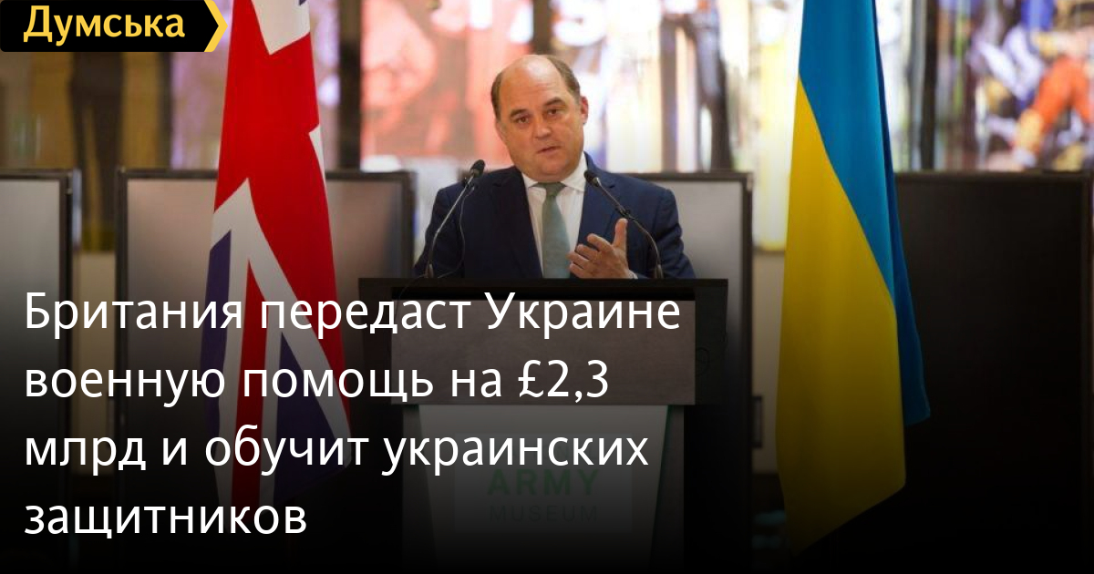 Министр обороны Великобритании Бен Уоллес сообщил, что Украине будет передана военная помощь в размере £2,3 млрд, а для украинских защитников проведут обучение.