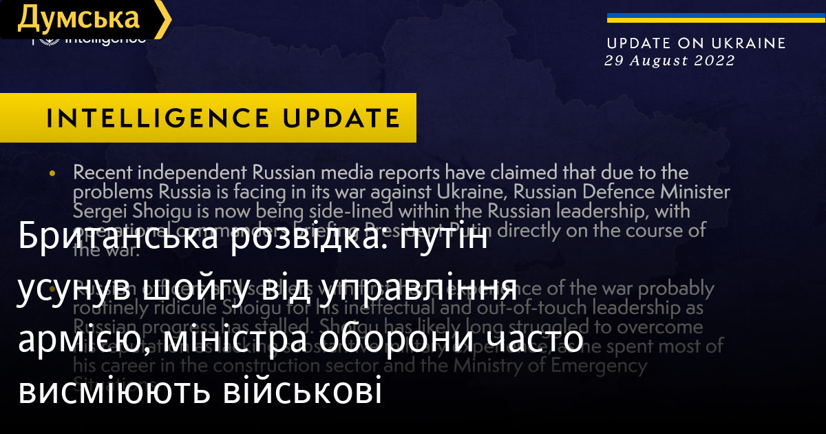 Представники Секретної розвідувальної служби Великобританії повідомили, що військові командири безпосередньо звітують путіну, він особисто визначає подальший курс розвитку операції.