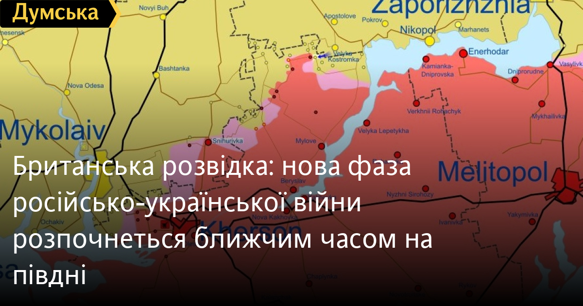 «Війна Росії проти України невдовзі увійде в нову фазу. Найінтенсивніші бойові дії змістяться на фронт протяжністю близько 350 км – від Запоріжжя до Херсона», – констатує британська розвідка.