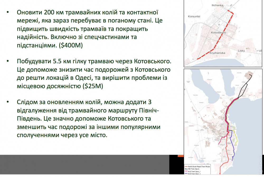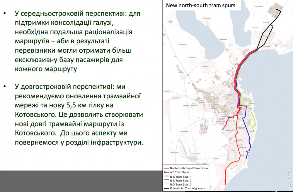 В долгосрочной перспективе предлагается проложить четыре трамвайных маршрута через весь город — с Таирова и Черемушек в Суворовский район. В Суворовском районе предлагается проложить 5,5 км трамвайных путей по улице Семена Палия (бывшая Днепропетровская дорога).