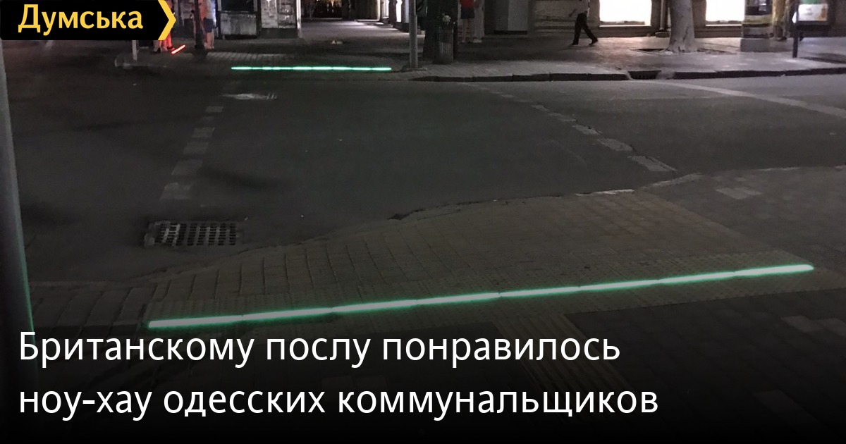 Чрезвычайный и Полномочный Посол Великобритании в Украине Мелинда Симмонс во время визита в Одессу 5 июля была приятно удивлена светящимися полосами, дублирующими цвет светофоров на перекрестках в центре города.