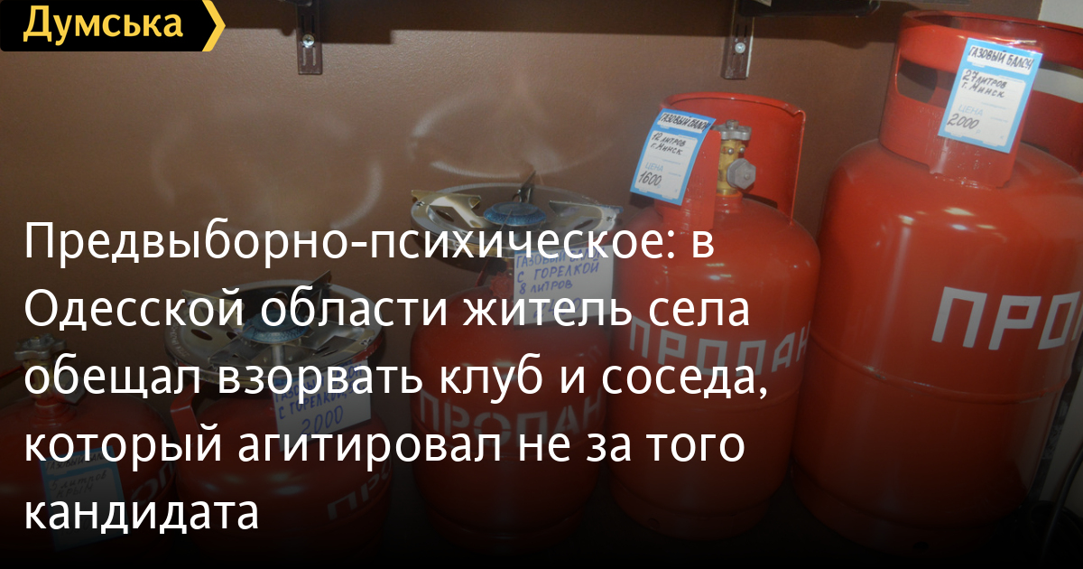 Как стало известно «Думской», сначала местный инвалид Андрей Н. пообещал поджечь своего односельчанина Б. за то, что тот агитирует за действующего президента. Специально для этого сельский «террорист» якобы принес под дом оппонента два газовых баллона.