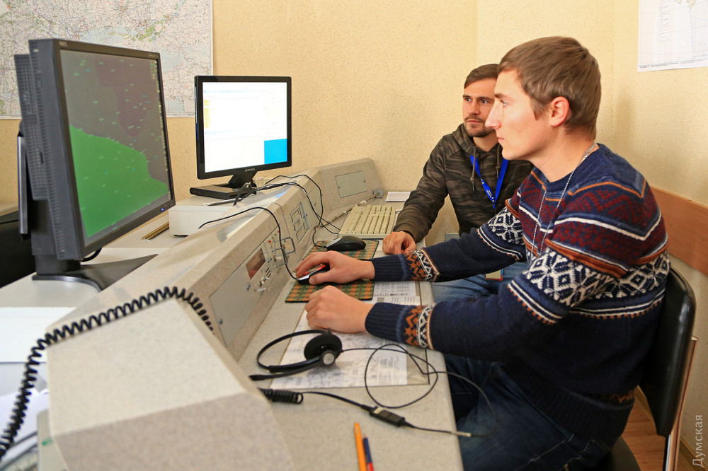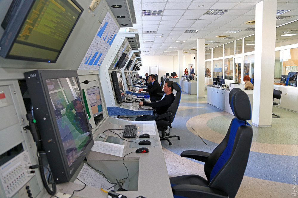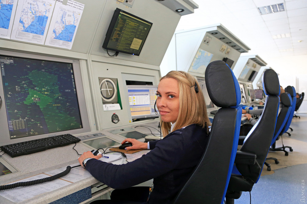 В большом светлом зале на первом этаже одесского корпуса «Украэроруха» всегда тепло и тихо. Температура воздуха поддерживается на комфортном уровне — плюс 18-20 градусов. Полтора десятка мягких кресел с подголовниками установлены вдоль специальных пультов управления, в которые вмонтированы дисплеи, микрофоны и кнопки. Дисплеи, кстати, очень необычного, не компьютерного формата – почти квадратные, с диагональю около 60 см.