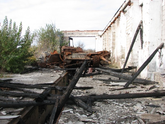 В нескольких километрах от передовой – небольшое донецкое сельцо, центр которого украшает пустой постамент, где еще недавно стоял гипсовый Ильич. Возле памятника — унылая, обшарпанная двухэтажка сельсовета и самое посещаемое в селе место, магазин, торгующий всем на свете, от сигарет и пива до горячих чебуреков и пельменей. Сейчас главные клиенты торговой точки – морпехи.