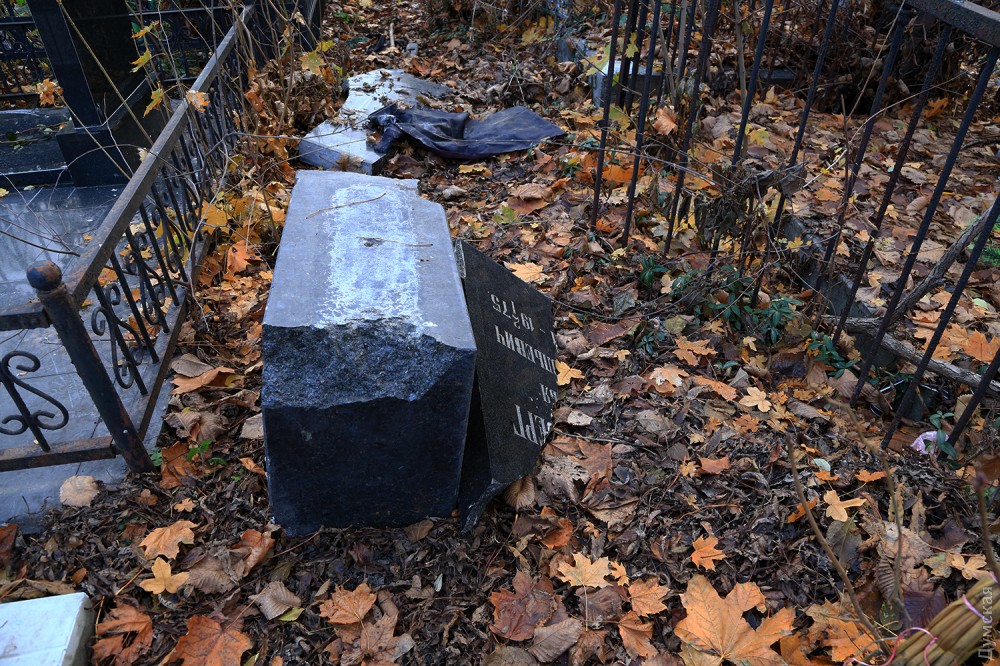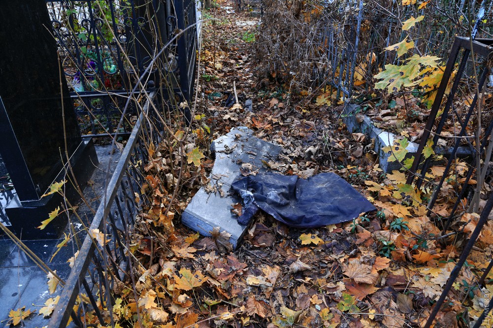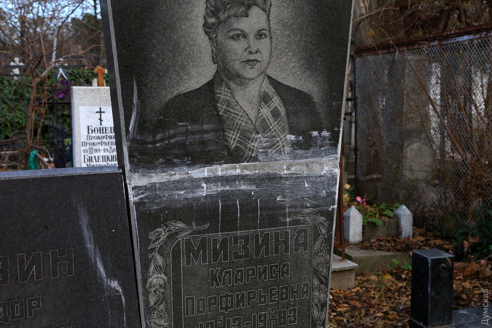 Многие памятники разбиты. В данном случае вандалам, видимо, не понравилась фамилия женщины