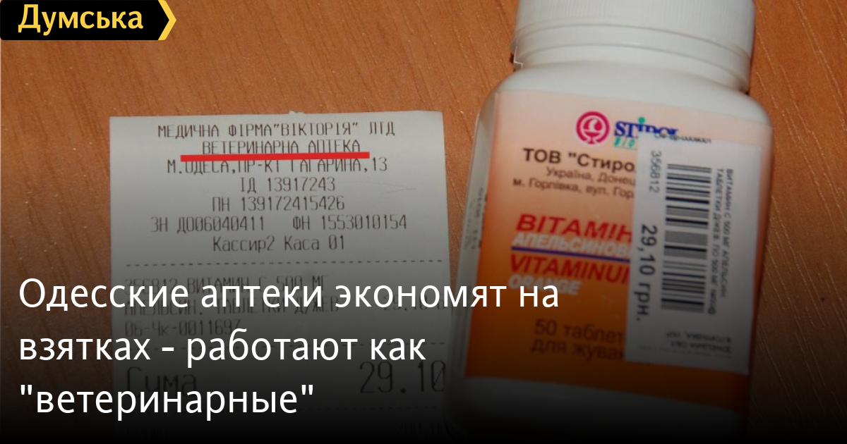 Коммерческое ноу-хау в Одессе. Ряд аптечных сетей решил сэкономить, оформив документы не в Госслужбе по лекарственным средствам Минздрава, а в областном управлении ветеринарной медицины. Известно это стало благодаря инциденту, который произошел 13 октября в аптеке компании «Реал Фарм» на улице Довженко, 8. Некий одессит оказался недоволен качеством купленного товара и пытался его вернуть. Дискуссию с продавцом он снял на видео, которое выложил на «Одесском форуме». Интернет-пользователи заметили, что в кадр попала странная лицензия, на основе которой работает аптека (смотрите третью минуту видео). Документ этот выдан главным управлением ветеринарной медицины (подразделение Министерства аграрной политики) и разрешает продавать исключительно товары для животных. Между тем, статья 19 Закона Украины «О лекарственных средствах» четко устанавливает, что «человеческие» аптеки должны иметь лицензию Министерства здравоохранения. Продажа лекарственных средств для гомо сапиенс без нее может повлечь за собой крупный штраф с конфискацией всей полученной выручки. Журналисты «Думской» выяснили, что «Реал Фарм» — не единственная аптечная сеть, работающая под «животной» лицензией. Так, наш корреспондент приобрел упаковку витамина С в аптеке фирмы «Виктория», что на углу проспектов Шевченко и Гагарина. Ему выдали фискальный чек, гласящий, что препарат продала ветеринарная аптека. О том, что имеет место грубое нарушение закона, нам подтвердили в Государственной службе по лекарственным средствам в Одесской области. «Ветеринарные аптеки существуют для животных, а не для людей, — заявил руководитель Алексей Лимарь. — Они не имеют права торговать никакими формами лекарственных средств, предназначенных для людей. Мы принимаем заявления о таких случаях. Для этого нужно иметь паспорт с пропиской и фискальный чек». Неофициально сотрудники Госслужбы говорят, что ветеринарными лицензиями обзавелись сети, которые раньше реализовывали товар через аптечные киоски. Как известно, работу последних с 29 декабря 2012 запретили по всей стране. Запрет аргументировали тем, что норматив площади аптечного киоска очень ограничен, а условия хранения лекарственных средств постоянно нарушаются. При переезде аптека должна переоформить лицензию, что, с учетом коррупционной составляющей, довольно дорого. Вот некоторые фармацевтические бароны, вынужденные менять дислокацию точек, и решили «перепрофилироваться» в ветеринаров — это намного проще и дешевле. Кроме того, для ветеринарных аптек не требуется наличие в штате выпускников высших и средних медицинских учебных заведений, достаточно и специалиста из сельскохозяйственного вуза. Сами руководители «засветившихся» аптечных сетей во всем обвиняют нерадивых подчиненных. «Сейчас у многих наших аптек есть и ветеринарная лицензия, и фармацевтическая, — утверждает директор компании «Реал Фарм» Николай Лиховидов. — У упомянутой аптеки на Довженко фармацевтическая тоже была, но она ее лишилась. Если там, кроме препаратов для животных, продают бинты, шприцы, вату, то это естественно, но если, как вы говорите, вместо ветеринарных товаров — лекарства только для людей, то это злоупотребление со стороны сотрудников. Кто-то допродает остатки, кто-то, не желая терять клиентов, закупает препараты под заказ. Они на 