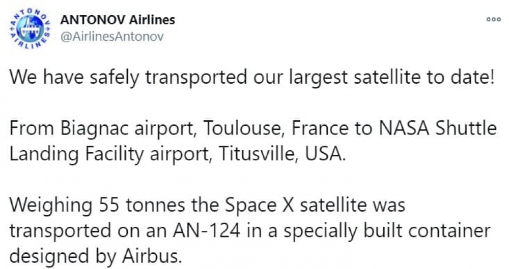 Украинский самолет доставил спутник SpaceX Илона Маска из Франции в США