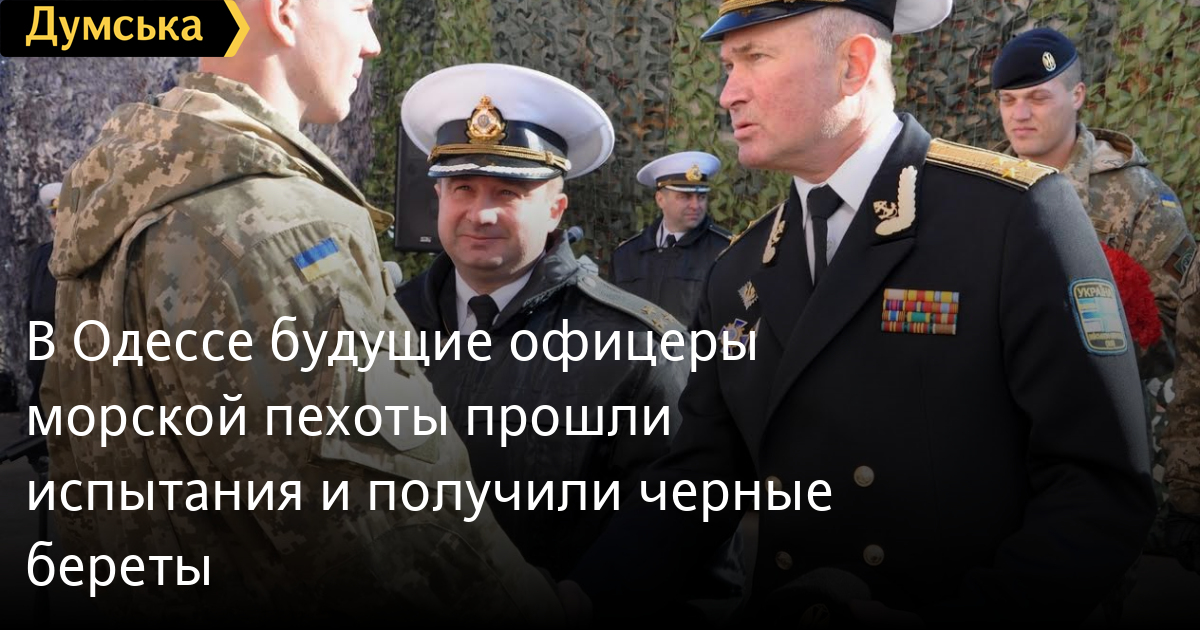 В Одессе будущие офицеры морской пехоты прошли испытания и получили черные беретыКурсанты факультета подготовки специалистов высокомобильных десантных войск Одесской военной академии приняли клятву морского пехотинца Военно-морских Сил Украины. Вчера, 5 ноября, 19 будущих офицеров, поступивших на факультет в этом году, поклялись оберегать и приумножать традиции украинской морской пехоты, служить Родине и не оставлять товарищей в беде. Стать морским пехотинцем Украины не так просто: сперва нужно сдать очень нелегкий экзамен — пройти крайне сложную полосу препятствий и только после этого принести традиционную клятву морпеха. Это испытание ребята прошли накануне. Также на борту учебного катера была проведена процедура «оморячивания», которая заключается в посвящении в моряки с шутливым выпиванием забортной морской воды. «Верный всегда», — с такими традиционными словами молодые воины получали знаменитые черные береты — символ украинских морских пехотинцев. После церемонии с напутственными словами выступил начальник штаба ВМСУ, капитан 1 ранга Роман Гладкий. Фото — пресс-центр ВМСУ СМЕРТЬ РОССИЙСКИМ ОККУПАНТАМ! Заметили ошибку? Выделяйте слова с ошибкой и нажимайте control-enter |