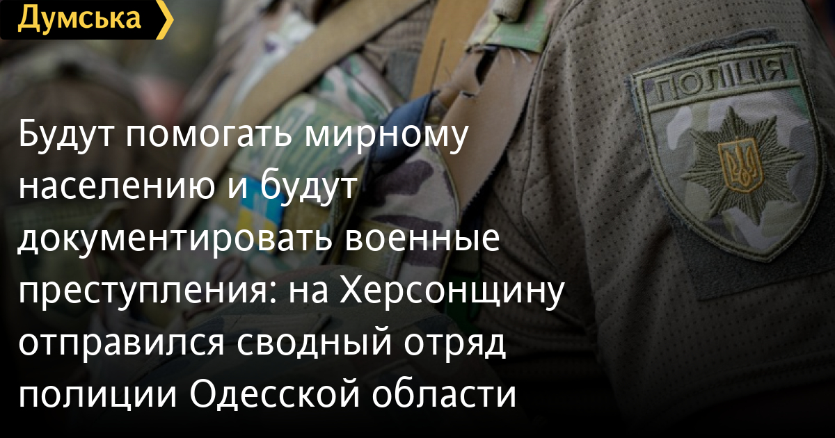 Допомагатимуть мирному населенню та документуватимуть воєнні злочини: на Херсонщину вирушив зведений загін поліції ОдещиниЗведений загін поліції Одещини вирушив на заміну своїм колегам, які кілька місяців перебували на Херсонщині та несли там варту. Поліцейські будуть допомагати мирному населенню, стежитимуть за правопорядком, документуватимуть воєнні злочини росії та виконуватимуть стабілізаційні заходи на звільнених територіях, повідомили в Головному управлінні Національної поліції в Одеській області. Зведений загін складається з правоохоронців з різних служб та підрозділів. «Ви заміните своїх колег та побратимів, які повертаються додому, і підсилите тих, хто продовжує виконувати поліцейські функції на деокупованих територіях Херсонщини. Кожен із вас – боєць, захисник, помічник, порадник, надія на відновлення справедливості. Наснаги вам у роботі та чекаємо вашого повернення у повному складі», — звернувся до поліцейських перед їх відправленням очільник поліції Одещини Іван Жук. Крім керівництва, правоохоронців проводжали рідні, колеги та представники духовенства. СМЕРТЬ РОСІЙСЬКИМ ОКУПАНТАМ! Помітили помилку? Виділяйте слова з помилкою та натискайте control-enter Новини по цій темі: 29 липня 2025: В Усатово Одеської області сталася перестрілка: поліція працює на місці (відео, оновлено) 28 липня 2025: П'яний на "Ягуарі" або гіпертонік? Звільнений топ-посадовець одеської поліції хоче повернутися на службу 19 червня 2025: Дівчинку, яку шукали сотні одеситів, знайшли вбитою: поліція працює з чоловіком, ймовірно причетним до загибелі 27 травня 2025: Увели гектар в університету: на Одещині засудили земельних аферистів, але без посадки і Хвоста |