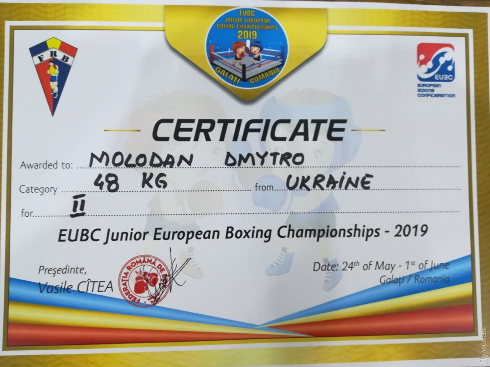 Серебряным призером юниорского чемпионата Европы по боксу стал Дмитрий Молодан из Андреевки Белгород-Днестровского района.