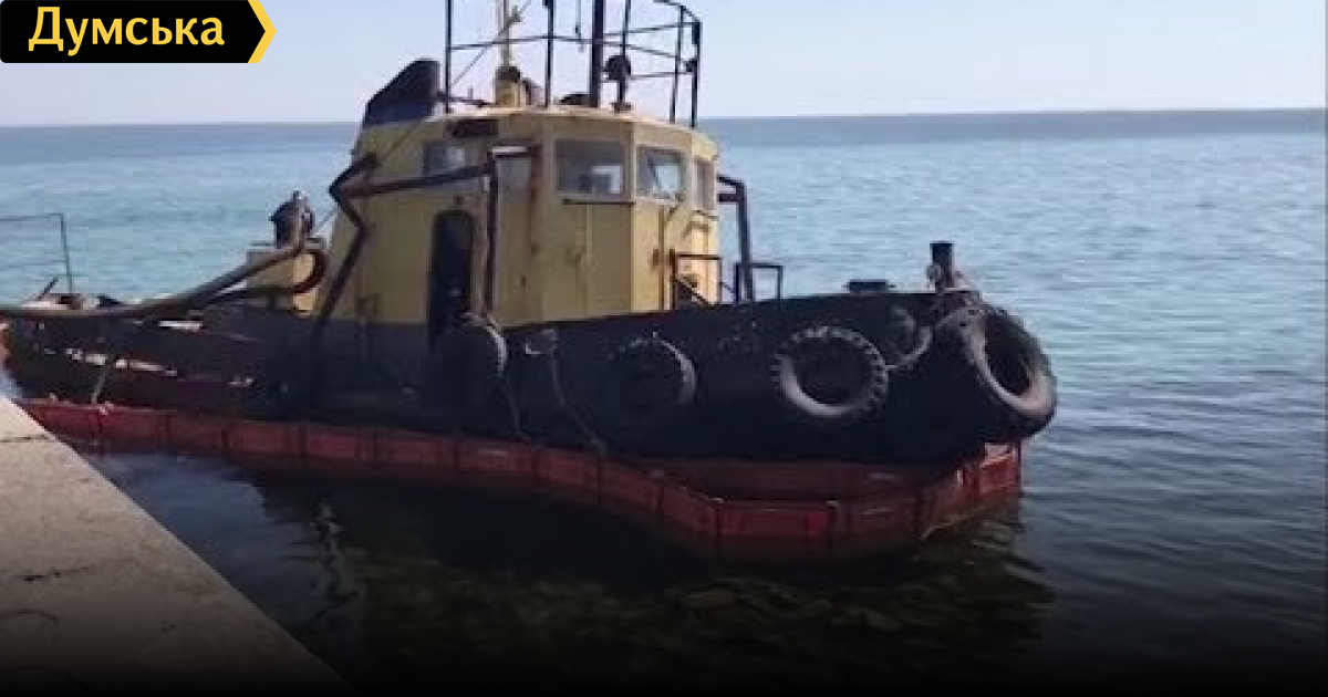 Буксир «Параллель» убирают с пляжа Дельфин. Утром в машинном отделении работал водолаз, чтобы «залатать» судно изнутри.