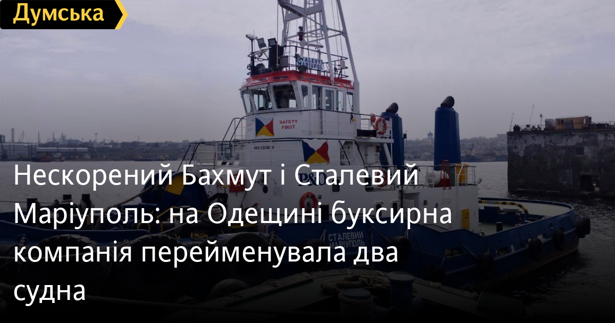 Нескорений Бахмут і Сталевий Маріуполь: на Одещині буксирна компанія перейменувала два суднаПриватна буксирна компанія, що працює в портах Великої Одеси, поміняла назви своїх суден, які нічого не означають, на імена міст-героїв. Колишній буксир CHAMPION тепер — «Нескорений Бахмут», а KUTTABUL — «Сталевий Маріуполь». Цікаво, що «Нескорений Бахмут» (колишній CHAMPION) на момент повномасштабного вторгнення рф перебував у миколаївському порту й успішно переніс усі атаки та обстріли міста корабелів. «Сталевий Маріуполь» (колишній KUTTABUL) всю війну пропрацював у порту Чорноморськ. СМЕРТЬ РОСІЙСЬКИМ ОКУПАНТАМ! Помітили помилку? Виділяйте слова з помилкою та натискайте control-enter |