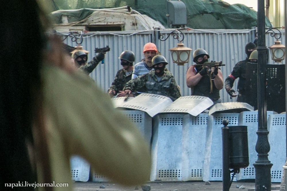 2 мая 2014 года принимал активное участие в уличном бое, находился вместе с Виталием Будько (Боцманом) и стрелял из травматического оружия, похожего на израильский пистолет-пулемет Uzi.