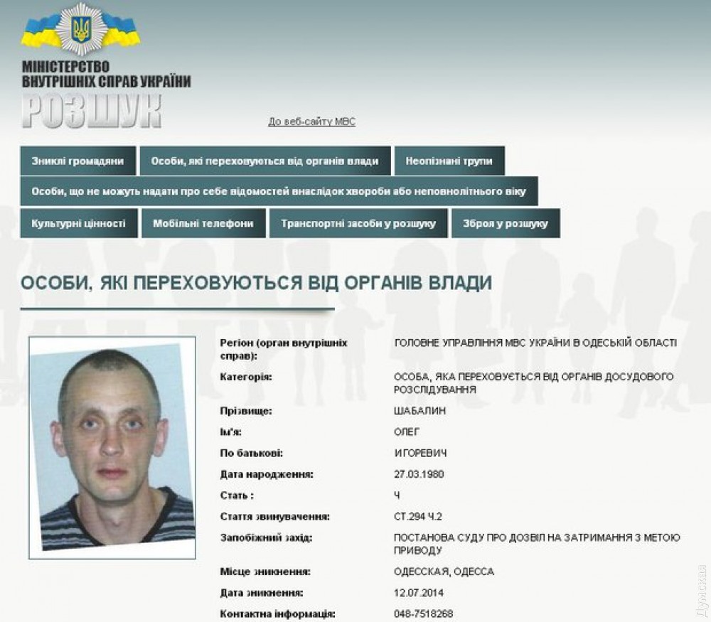 А там его, оказывается, ждали. Шабалина арестовали, предъявили обвинение в «уклонении от превентивного надзора» (он как судимый должен был регулярно отмечаться у участкового) и приговорили к году и шести месяцам лишения свободы. Отсидев, он снова приехал в Одессу, где женился на местной жительнице, своей давней подруге, и взял ее фамилию. Тут на него и обратили внимание следователи по делу 2 мая, которые давно интересовались местонахождением «человека с «Узи».