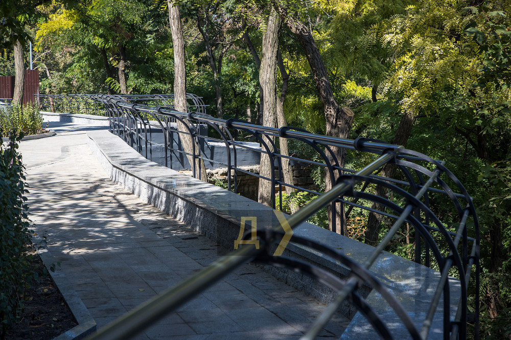 Как передает корреспондент «Думской», сейчас строители облагораживают участок между Шахским дворцом и Торговой улицей. Здесь меняют тротуарное покрытие, проводят новые коммуникации, переделывают клумбы, устанавливают новое уличное освещение, садово-парковую мебель и ограду на парапете.