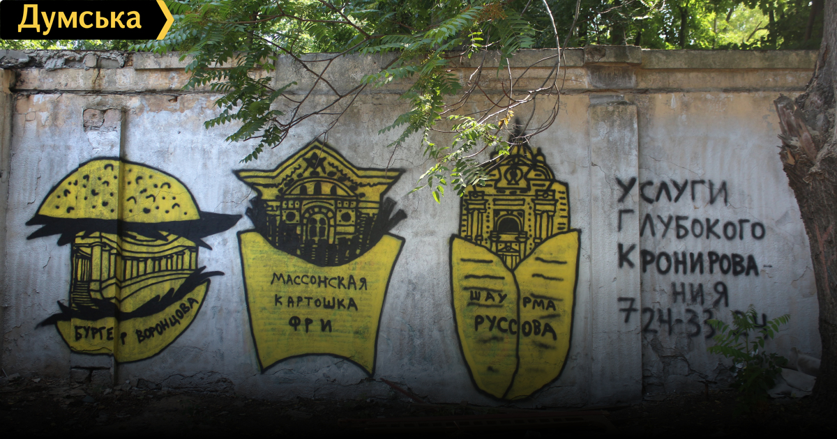 Стены одесского Летнего театра (в Горсаду), который пока удалось спасти от застройки, украсили симпатичные граффити. Как передает корреспондент «Думской», они изображают знаковые здания Одессы в виде фастфуда. Скажем, дом Руссова стал шаурмой, а разрушенные мастерские барона Унгерн-Штернберга — чебуреком. Полиптих под названием «Фастбуд» создал известный одесский уличный художник, известный как APL315. Еще одну его работу из той же серии — Оперный театр, представленный заведением общепита, — можно увидеть в Одесском художественном музее, где до 25 июня проходит выставка граффити Terrible Kissers. Фото и видео — Алексей Костржицкий СМЕРТЬ РОСІЙСЬКИМ ОКУПАНТАМ! Помітили помилку? Виділяйте слова з помилкою та натискайте control-enter Новини по цій темі: 26 червня 2025: Сумнівний подарунок: пам'ятку архітектури на Приморському бульварі намагаються повернути одеській громаді 17 серпня 2025: Продають мерч у залі Костанді, ховають Стародавній Єгипет у підвалах і виставляються в Німеччині: як виживають одеські музеї (частина перша) 27 лютого 2025: Компанія з групи Коломойського готується до будівництва торгового центру біля Дерибасівської 28 листопада 2024: Будинок із «милицями»: на пам`ятку архітектури в одеському провулку Ройтбурда чекають протиаварійні роботи за 20 млн грн (фото) |
