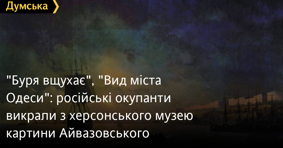 «Буря вщухає», «Вид міста Одеси»: російські окупанти викрали з херсонського музею картини АйвазовськогоРосійські нацисти викрали безліч цінних експонатів із колекції Херсонського художнього музею. Серед них - три картини видатного художника-мариніста Івана Айвазовського. Йдеться про твори «Буря вщухає», «Вид міста Одеси» і «Море». Як повідомили в день народження художника в херсонському музеї, полотна Айвазовського стали для загарбників нав'язливою ідеєю — саме їх вони насамперед викрадали з музеїв окупованих міст і за ними вимірювали вартість інших експонатів. «Називаючи Айвазовського «великим російським художником» (бо він навчався в Петербурзькій академії мистецтв), росіяни «викреслюють» усі «неканонічні» факти його життя, про які ми вирішили згадати в день його народження. Любов до України в майбутнього художника виплекав його батько-вірменин, чиї предки в ХVIII ст. переселилися із Західної Вірменії до Галичини, а в 1812-му він перевіз свою сім'ю до Криму. Там, у Феодосії, 29 липня 1817 року і народився Ованес Айвазян, якого світ знатиме як Івана Айвазовського. Ностальгуючи за далекою батьківщиною, батько сімейства залюбки приймав удома мандрівних бандуристів. Коли вони співали разом українських пісень, маленький Ованес пробував акомпанувати їм на скрипці. Через багато років на урочистому вечорі в Санкт-Петербурзі Айвазовський блискуче виконає на скрипці ці українські мелодії, почуті в дитинстві. І сам художник, і його батько вільно володіли українською та польською мовами», — розповіли в музеї. Художник також любив мандрувати Україною, зазначили в музеї: «Усе своє життя Айвазовський тяжів до культурної української спільноти і часто подорожував містами України, мав тісні зв'язки з Херсонщиною, товаришував із родиною Фальц-Фейнів. Щоліта, повертаючись із Петербурга до Криму, Айвазовський зупинявся в них, мав свою кімнату, облаштовану під майстерню, дарував друзям свої твори. До речі, появі низки його картин української тематики сприяла саме Софія Богданівна Фальц-Фейн». СМЕРТЬ РОСІЙСЬКИМ ОКУПАНТАМ! Помітили помилку? Виділяйте слова з помилкою та натискайте control-enter |