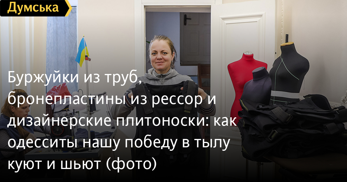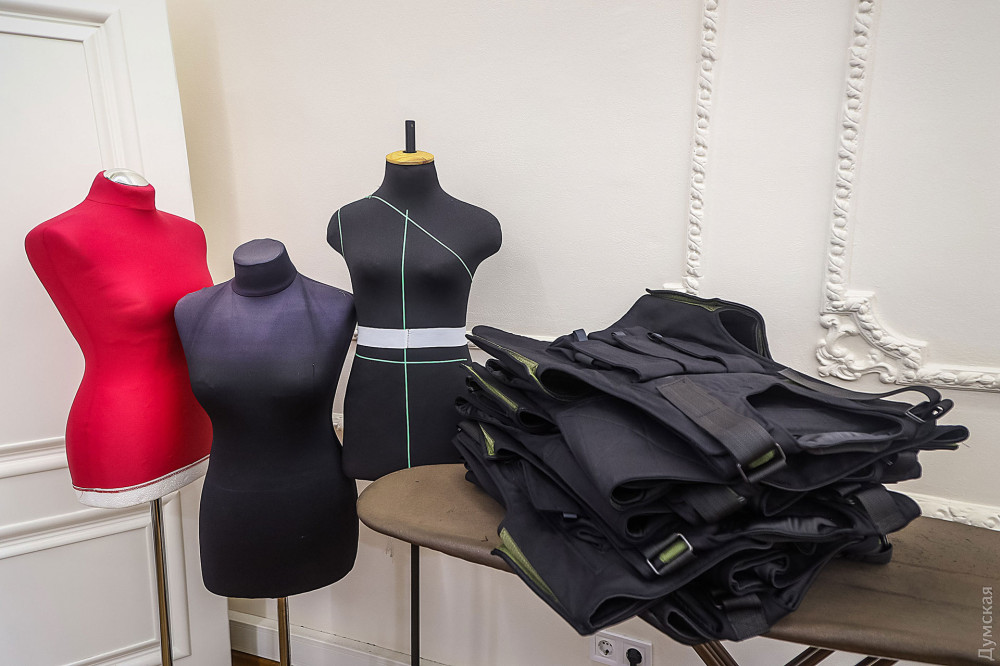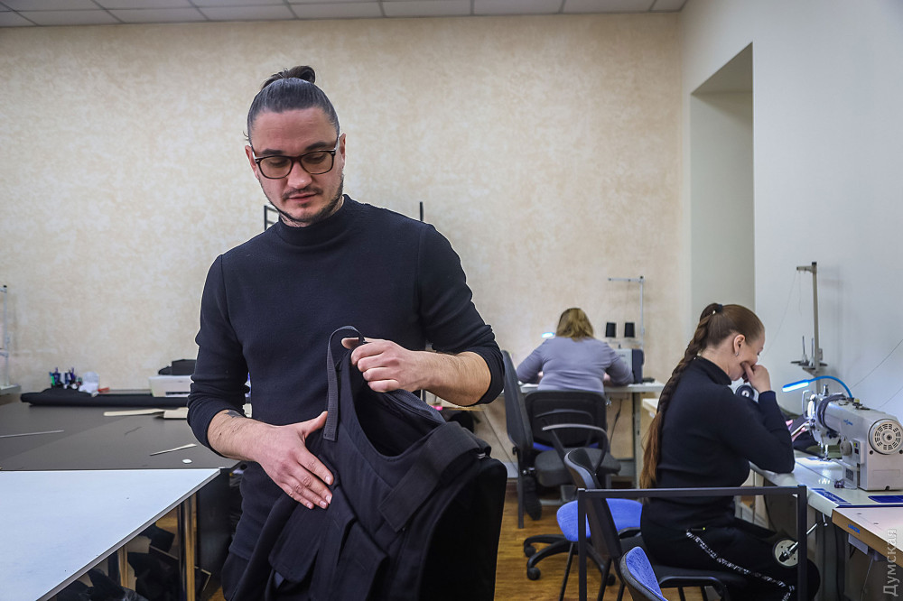Следующие наши герои работают, или даже лучше сказать творят, на Большой Арнаутской. Еще две недели назад сюда приезжали модницы со всей Одессы, чтобы заказать платье, пиджак или пальто от известного одесского дизайнера Виталия Узуна. Сейчас здесь организован цех по пошиву плитоносок.