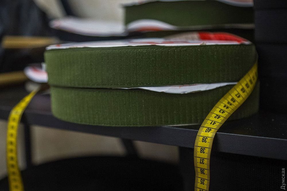 «Идея родилась еще 25-го числа, — рассказывает модельер. – Я проснулся после обстрелов и твердо решил, что нужно быть полезным. 26-го мы уже запустились. Отшили партию одежды для пограничников, потом быстро сделали партию желтых повязок (сейчас украинские защитники сменили цвет на синий – Ред.) и перешли на броненосители».
