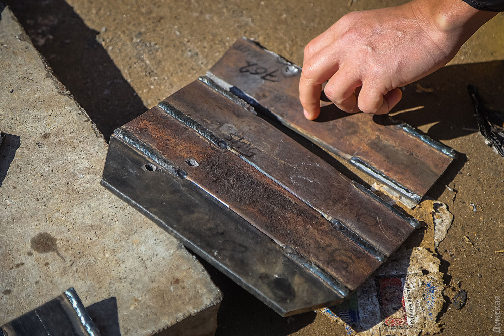 «Волонтеры, военные — всем, кому надо, мы всем отдаем, и спрос уже начинает снижаться, — рассказывает Александр. – Мы решили варить бронепластины. Опытным путем определили, что лучше всего для этого подходят автомобильные рессоры, толщина от 8 до 10 мм. Отстреляли — они держат и калибры 5,45 и 7,62 с десяти метров. Уже понимаем как двигаться, дня два-три, и мы начнем отгружать пластины для комплектации».